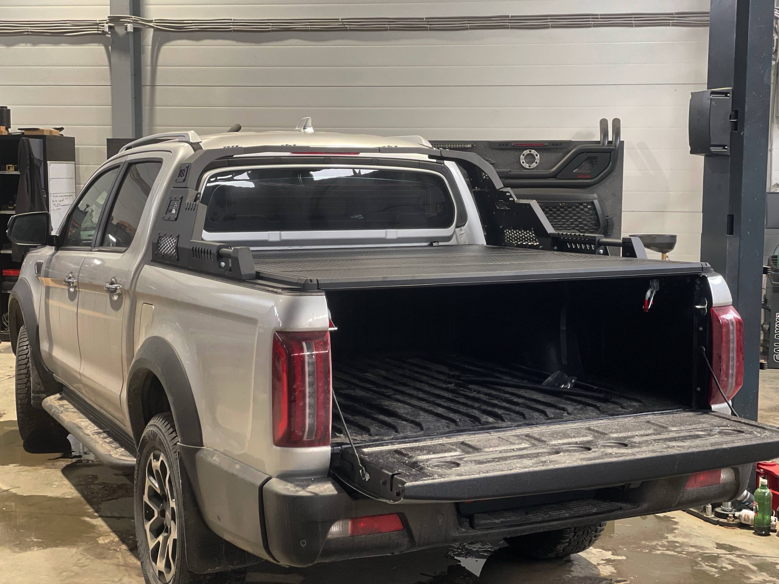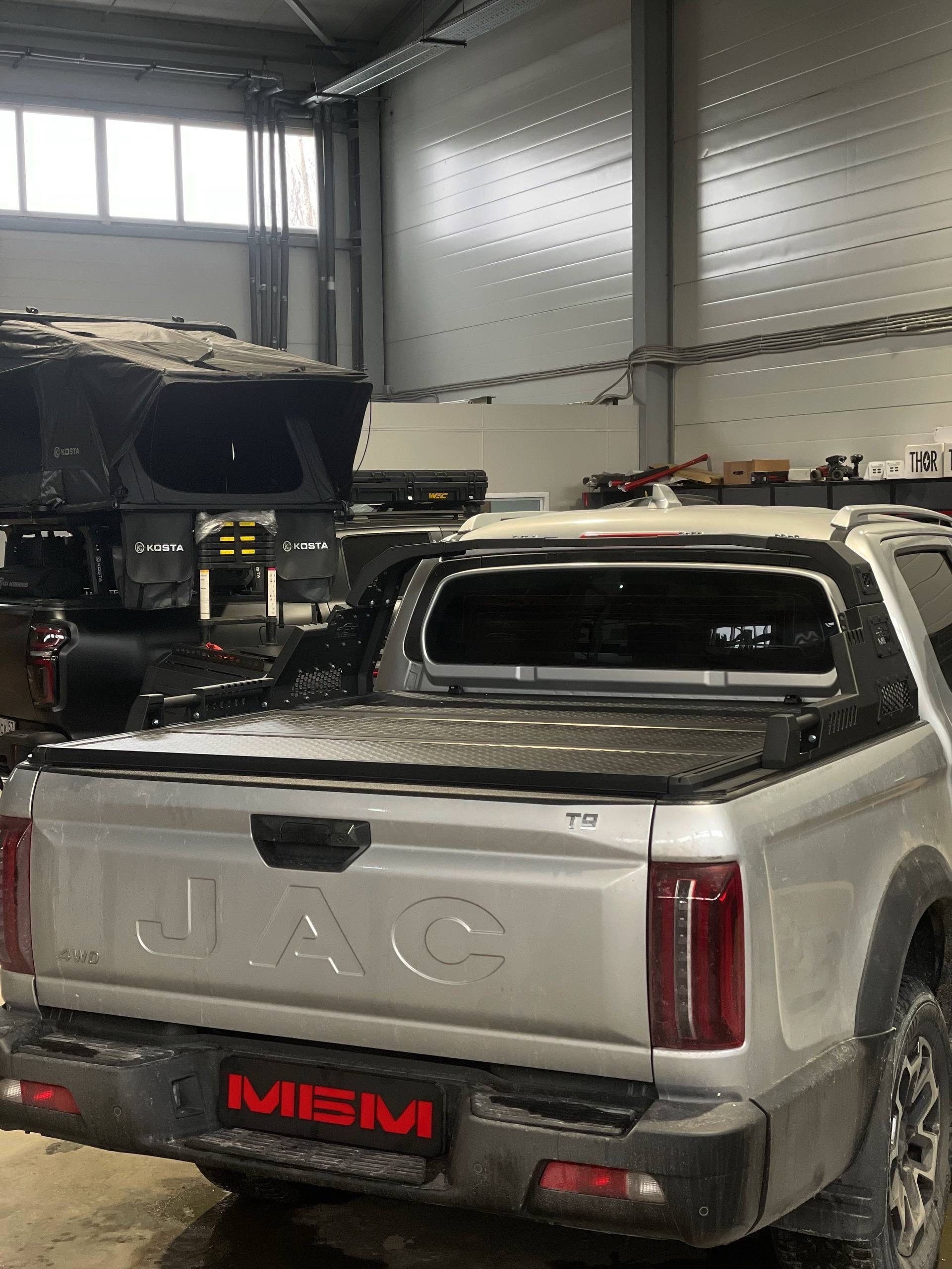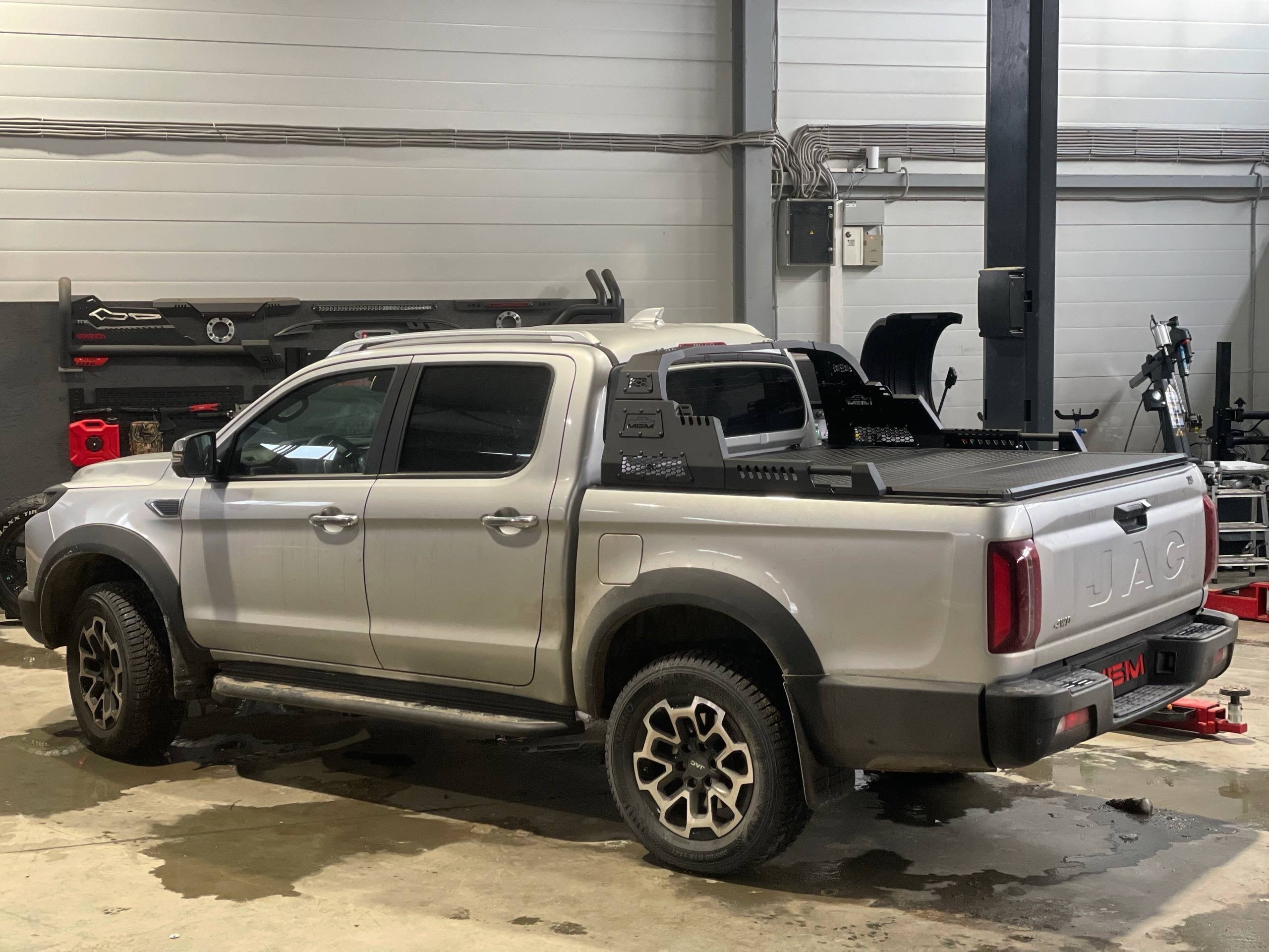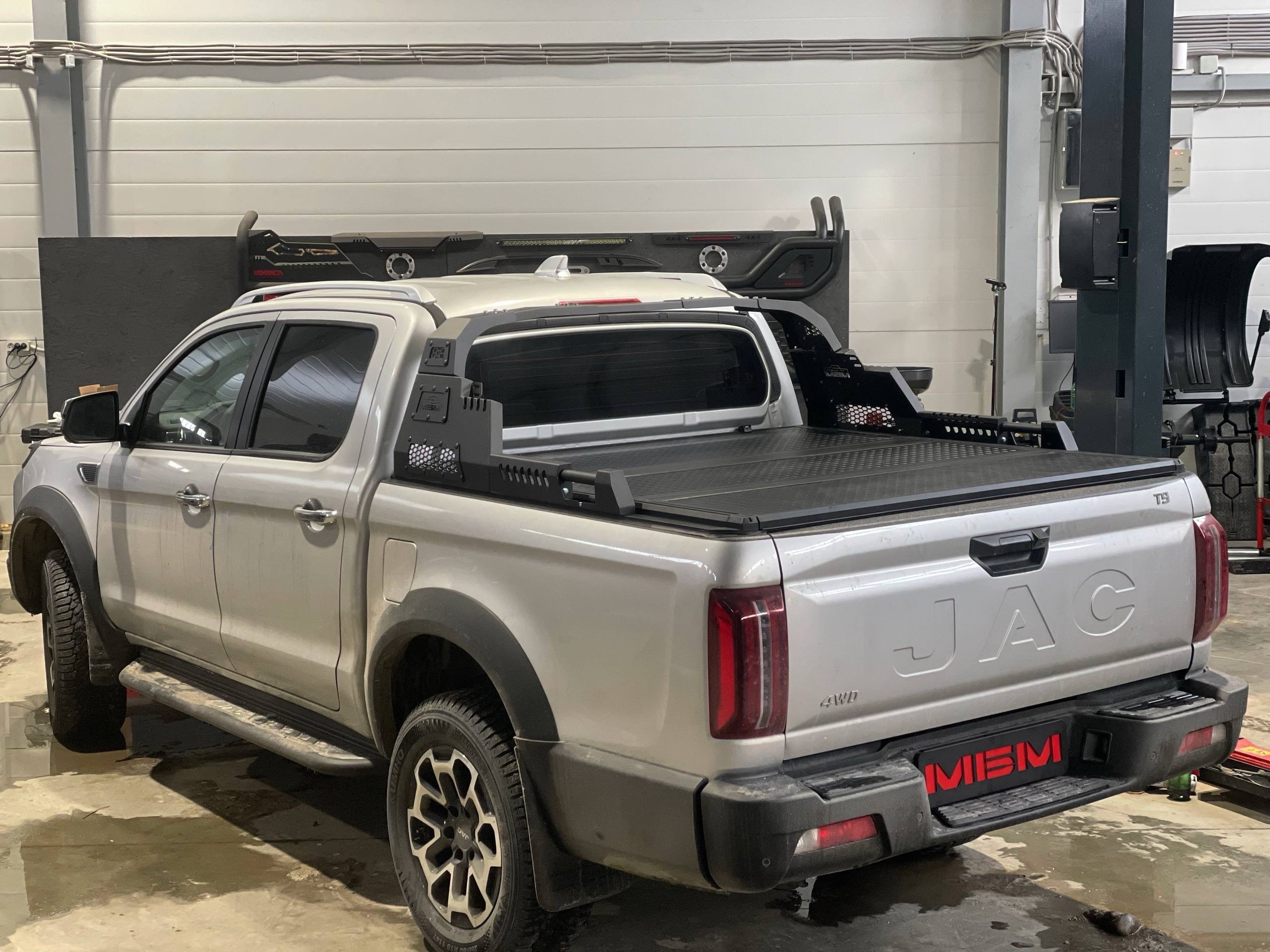 Трёхсекционная сдвижная крышка — практичное и функциональное решение для защиты грузового отсека пикапа JAC T9. Конструкция сочетает прочность, удобство эксплуатации и эстетическую гармонию с дизайном автомобиля