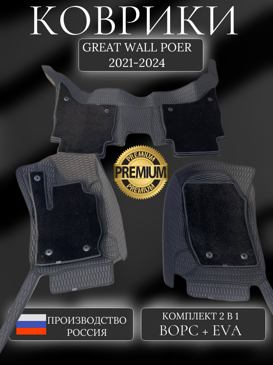 Коврики в салон Great Wall Poer «2 в одном» (ворс + EVA) со сменными накладками — практичное решение для защиты интерьера: комбинированный материал обеспечивает комфорт и надёжность, ворсовая часть создаёт уют, а слой EVA эффективно задерживает воду, грязь и песок; сменные накладки позволяют быстро освежить вид салона и легко очищаются, а точная подгонка по контурам пола гарантирует плотное прилегание и полную защиту от загрязнений.