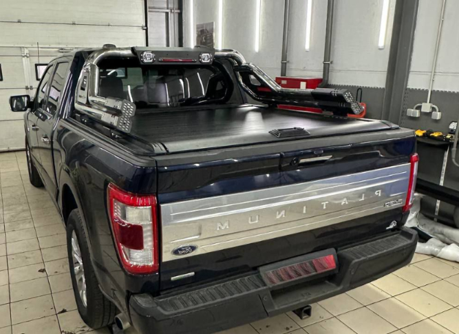 Механическая роллета — это алюминиевая выдвижная крышка кузова, защищающая груз и сам кузов от грязи, осадков и несанкционированного доступа. Она оснащается механическим замком с ключом, регулируемой пружиной натяжения для удобного открывания/закрывания и может фиксироваться в трёх положениях: полностью закрыто, полностью открыто и полузакрыто. Установка выполняется без сверления — с помощью четырёх струбцин, входящих в комплект.